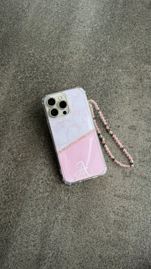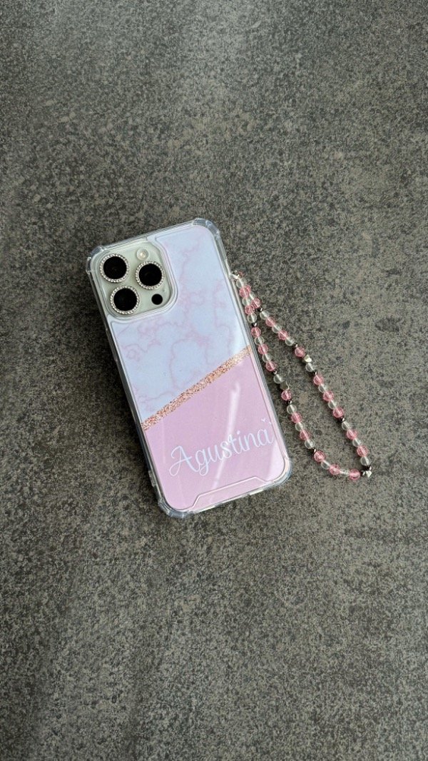 Case personalizada marmol con detalles dorados + inicial o nombre + colgante