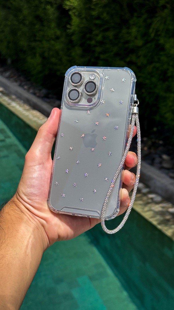 Case estrellitas + colgante strass plata
