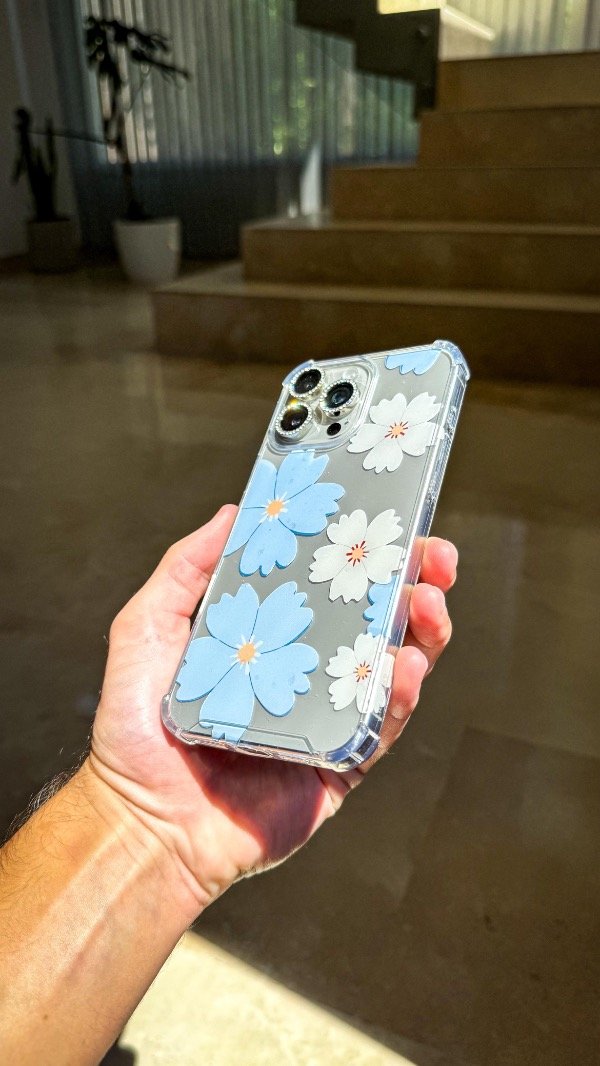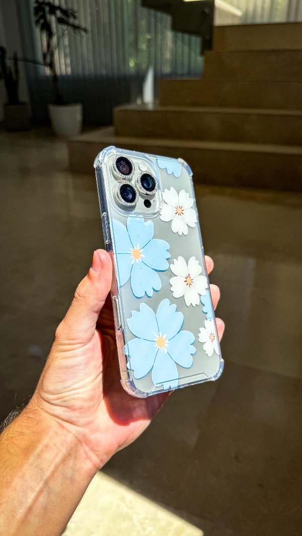 Funda transparente antigolpes + vinilo pegado del lado de adentro.