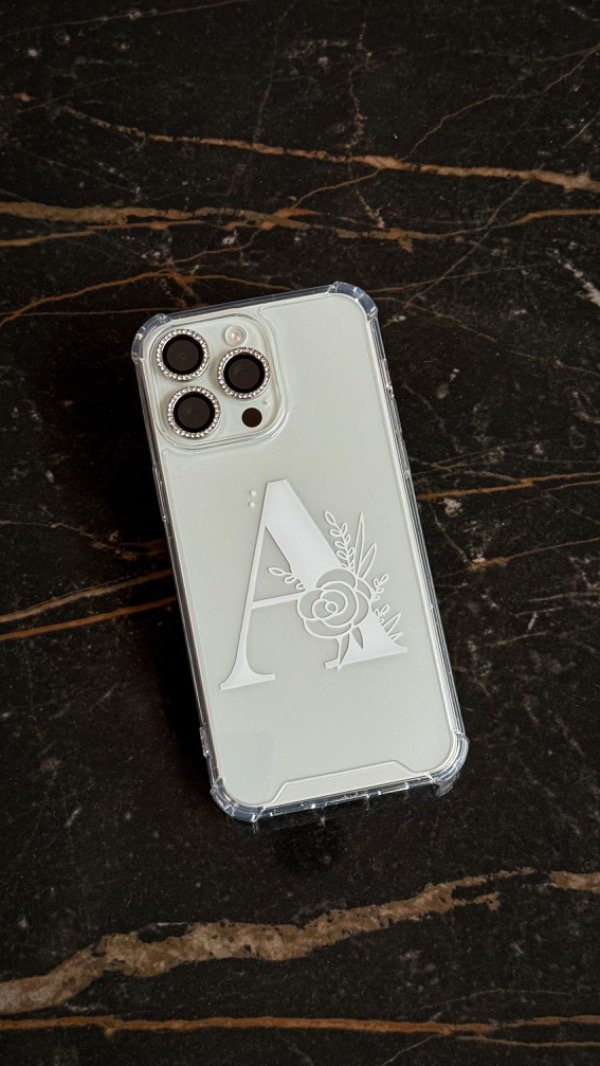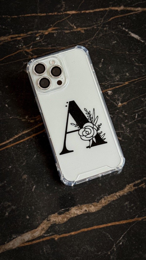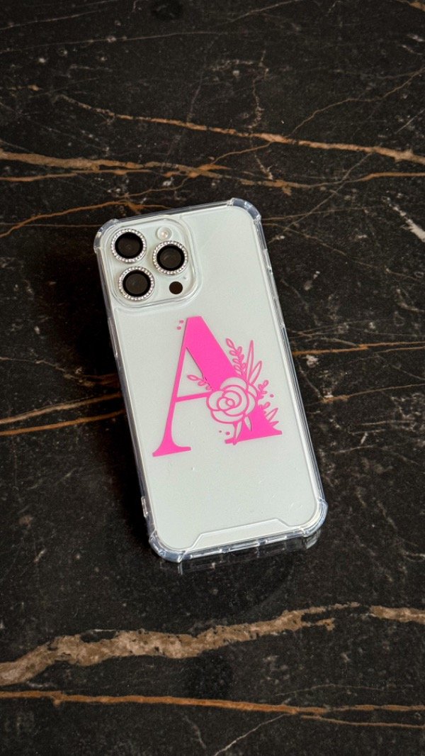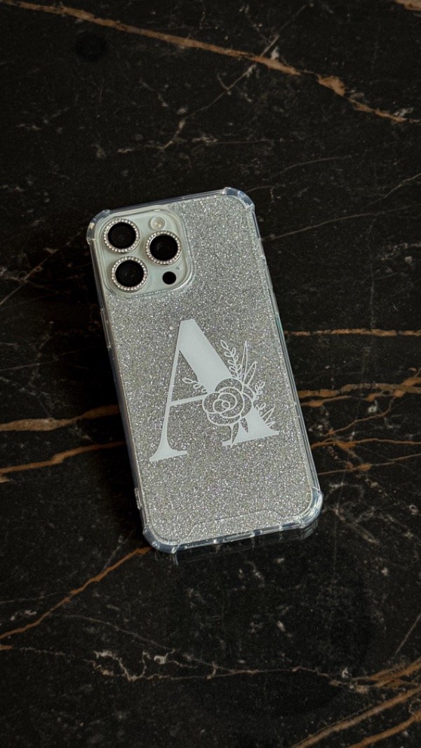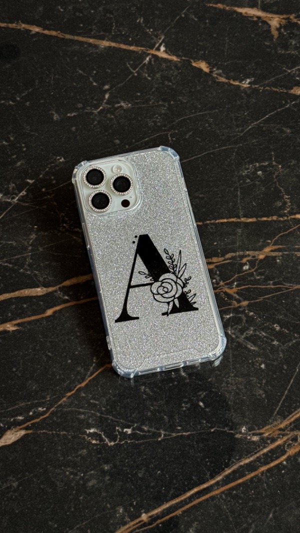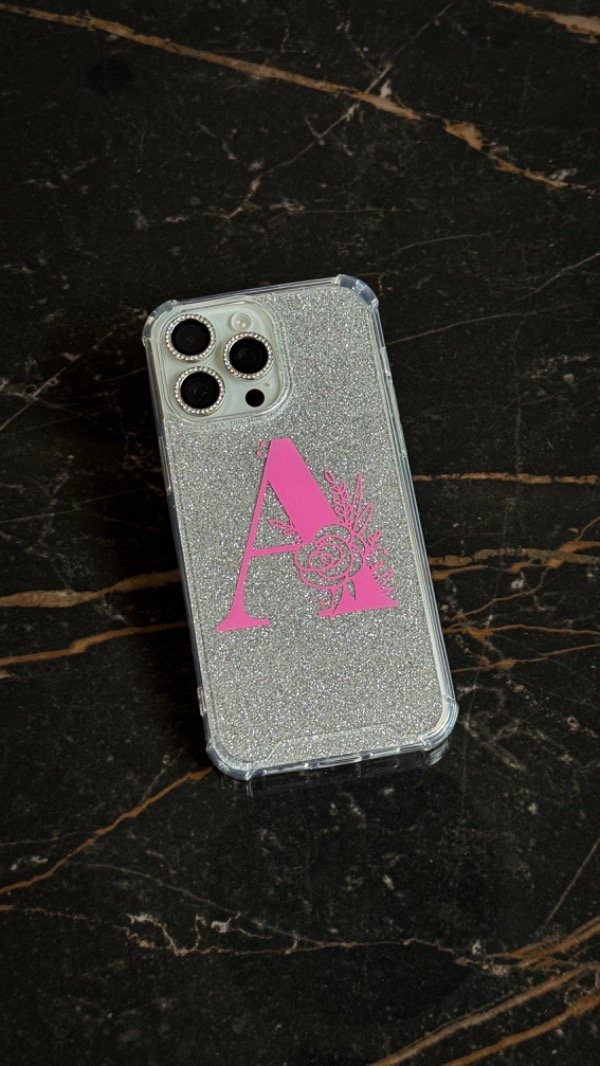 Funda reforzada antigolpes estampada en vinilo. Podes elegir el color que mas te guste! Viene con una filmina glitter plateada que podes sacar cuando quieras!